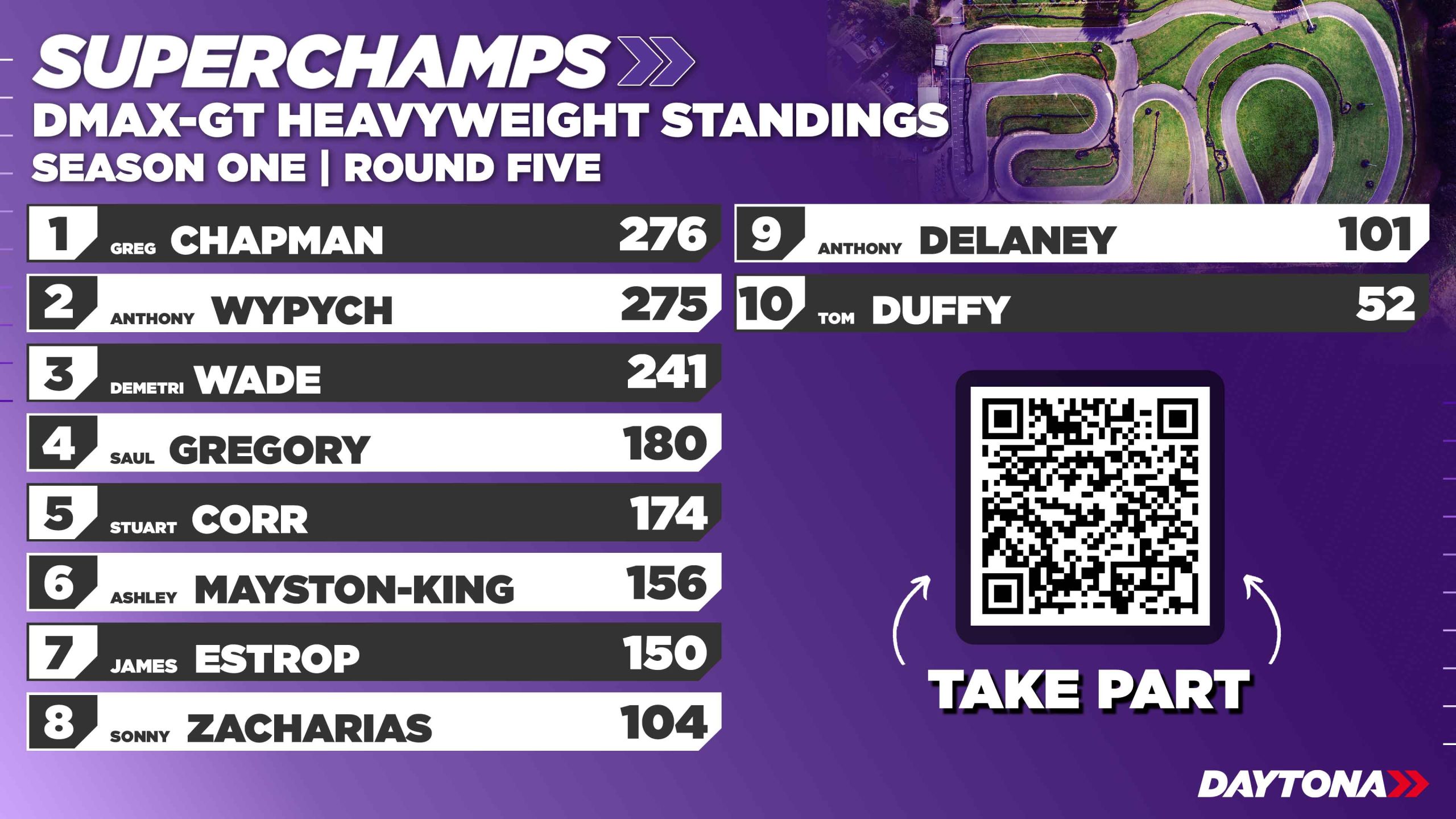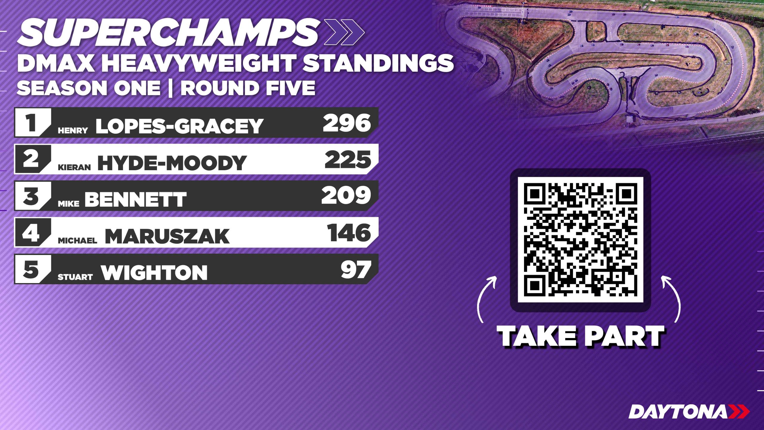 In the Heavyweight Shootout, Ashley Mayston-King came out on top after a close contest with Antony Wypych. The two resumed their duel in the final, which ended in controversy. Wypych made a borderline overtake on Mayston-King on the final lap and received a one-place bump-and-pass penalty. The penalty was upheld on appeal, awarding Mayston-King a perfect round. James Estrop made a strong return to DMAX competition, finishing third with an impressive drive.