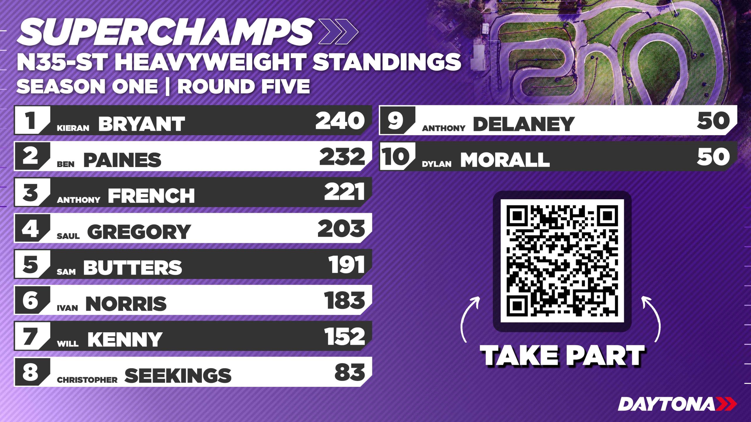 Anthony French was untouchable in the Heavyweight Shootout, crossing the line comfortably ahead of the rest of the field. He backed it up with another dominant drive in the final, building a thirteen-second lead over Kieran Bryant. Bryant had to work hard in the early laps to fend off Saul Gregory, who eventually settled for third.