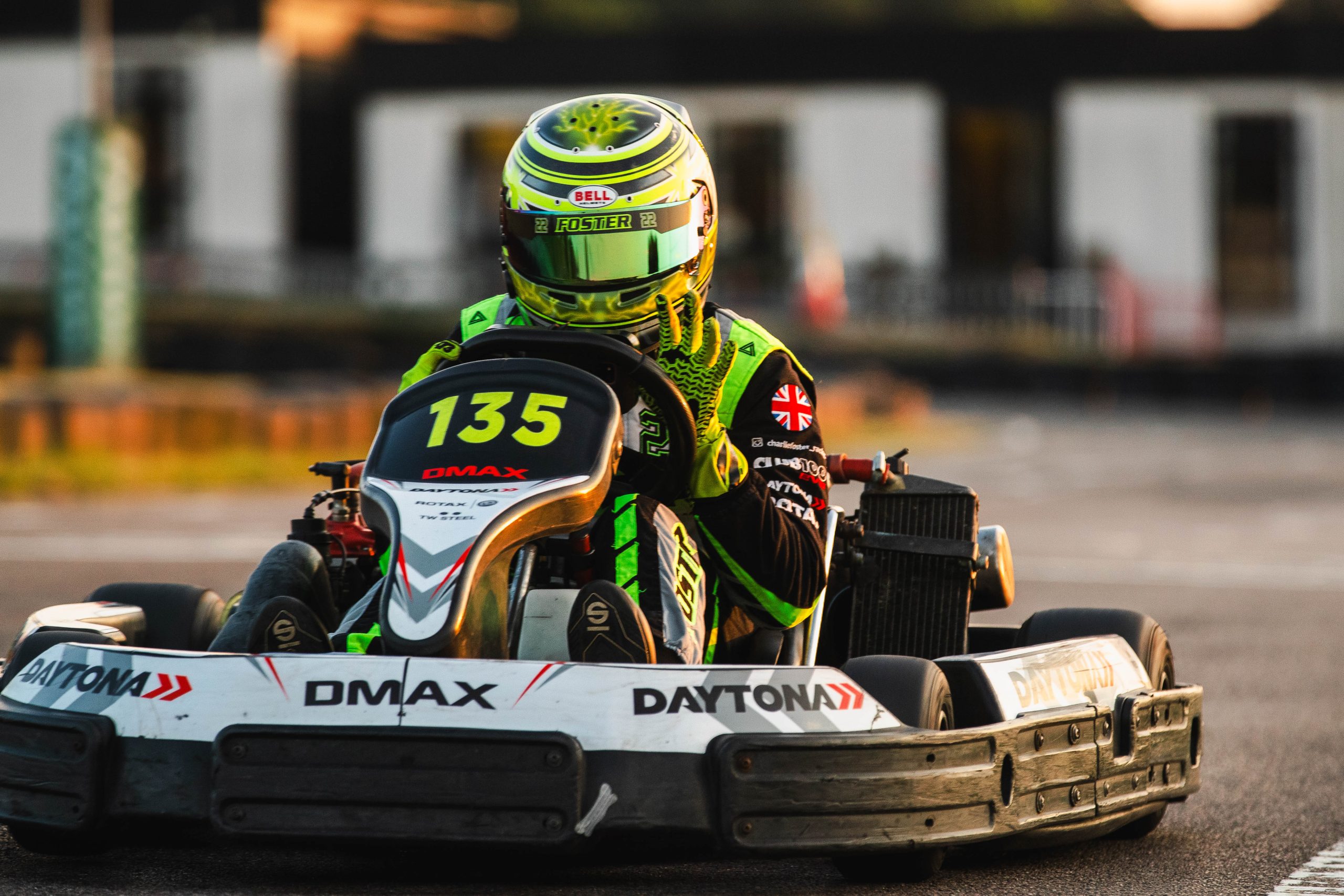 The next logical step? Outdoor karting. As a local lad, Daytona Sandown Park became the proving ground. But the transition wasn’t seamless, Charlie admits he was initially circulating at the back of the pack. Determined to improve, he booked a tuition session, knuckled down, and set his sights on the Thursday Night League and SuperChamps.